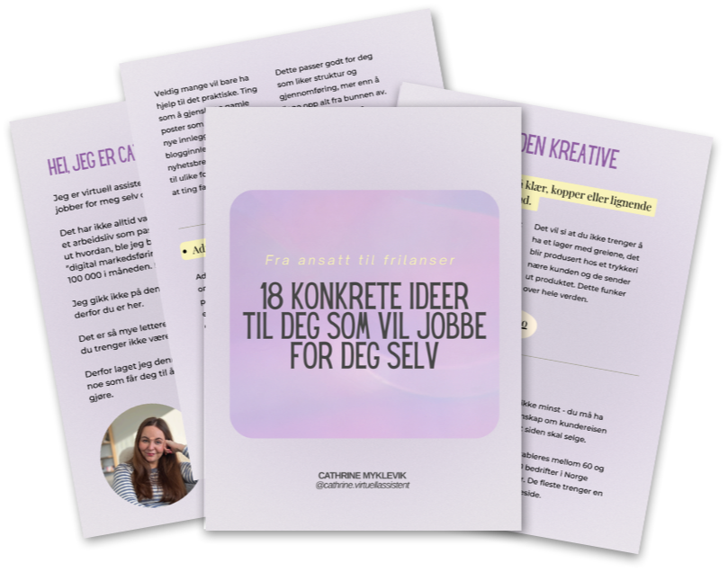 En gratis guide med 18 ideer til frilansjobber og selvstendige oppdrag – for deg som vil jobbe hjemmefra og starte noe eget på ordentlig.