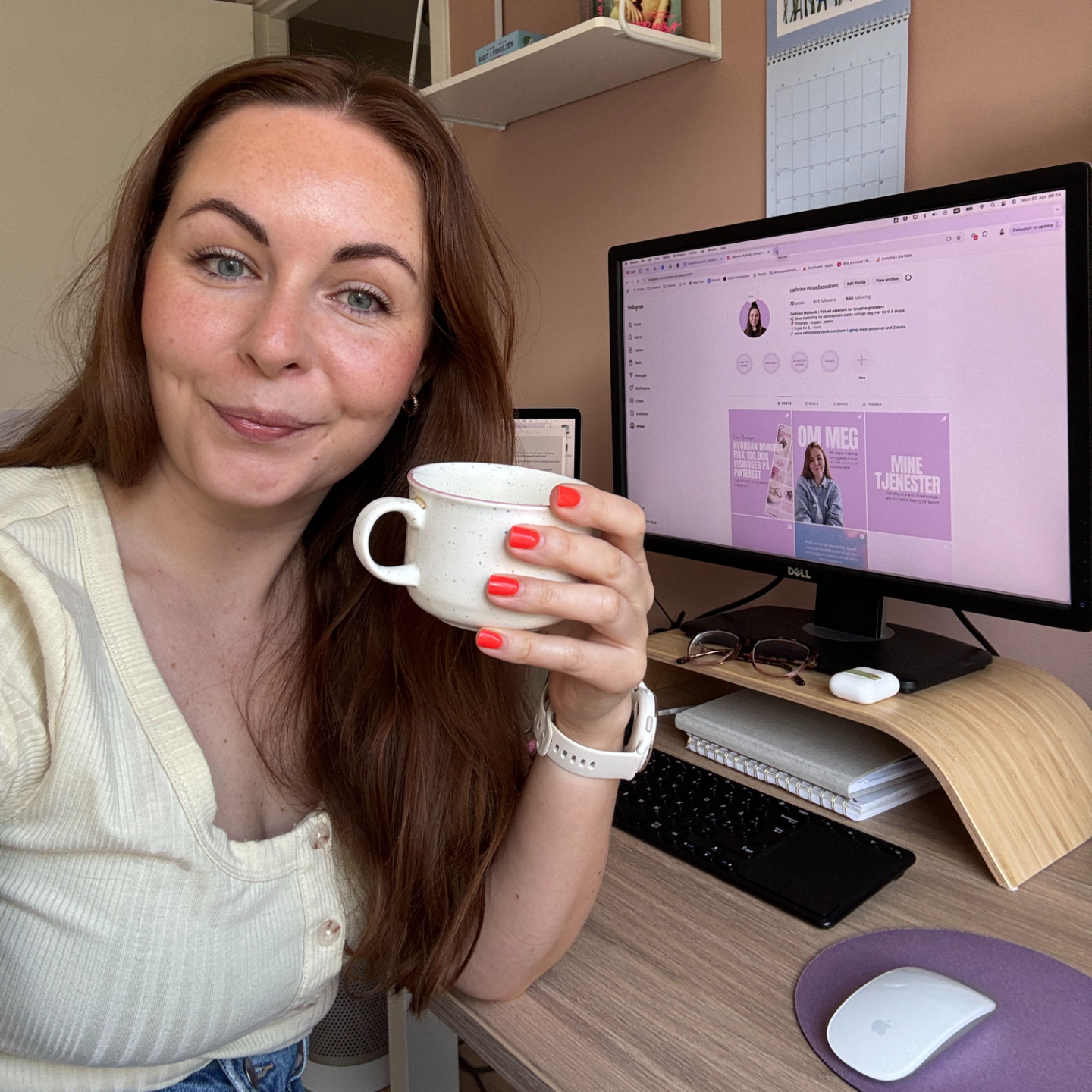Jeg jobber som virtuell assistent og leier meg ut til gründere og små bedrifter som trenger hjelp med markedsføring og administrasjon. Kort sagt: jeg bruker kunnskapen og erfaringen min til å gjøre nytte for andre - og bestemmer selv når, hvordan og for hvem.
